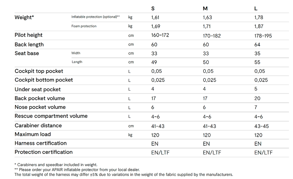Ayrıca, Apair şişirilebilir koruma sipariş edebilirsiniz. Hike & fly maceralarında küçük hacim, güvenlik ve hafiflik arayan pilotlar için idealdir. EN ve LTF sertifikalı bu ultra hafif koruyucu, yalnızca 240 gr ağırlığındadır ve verimliliği ve pratikliğiyle öne çıkar. Şişirmeyi kolaylaştıran ve aynı zamanda harnesi paketlemek ve taşımak için bir sıkıştırma torbası görevi gören Infbag kılıfı ile birlikte gelir. Korumanın tüm ayrıntılarını buradan inceleyebilirsiniz.